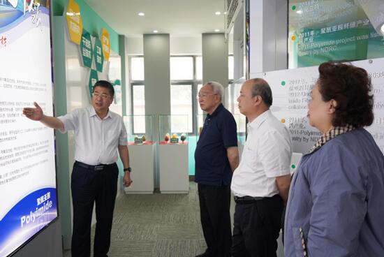 王士華對孫晉良、陳文興院士一行表示熱烈歡迎,并陪同參觀了公司展廳、生產(chǎn)車間以及國家碳纖維復(fù)合材料試驗(yàn)公共服務(wù)平臺。在展廳,王士華詳細(xì)匯報(bào)了企業(yè)的發(fā)展歷程、產(chǎn)品功能特色、應(yīng)用領(lǐng)域,以及產(chǎn)品在特種防護(hù)、航空航天等領(lǐng)域應(yīng)用研究進(jìn)展。兩位院士與對奧神新材料公司近幾年快速發(fā)展給予高度評價(jià),充分肯定了奧神新材對我國高性能聚酰亞胺纖維及其后道制品研發(fā)工作作出的突出貢獻(xiàn)。