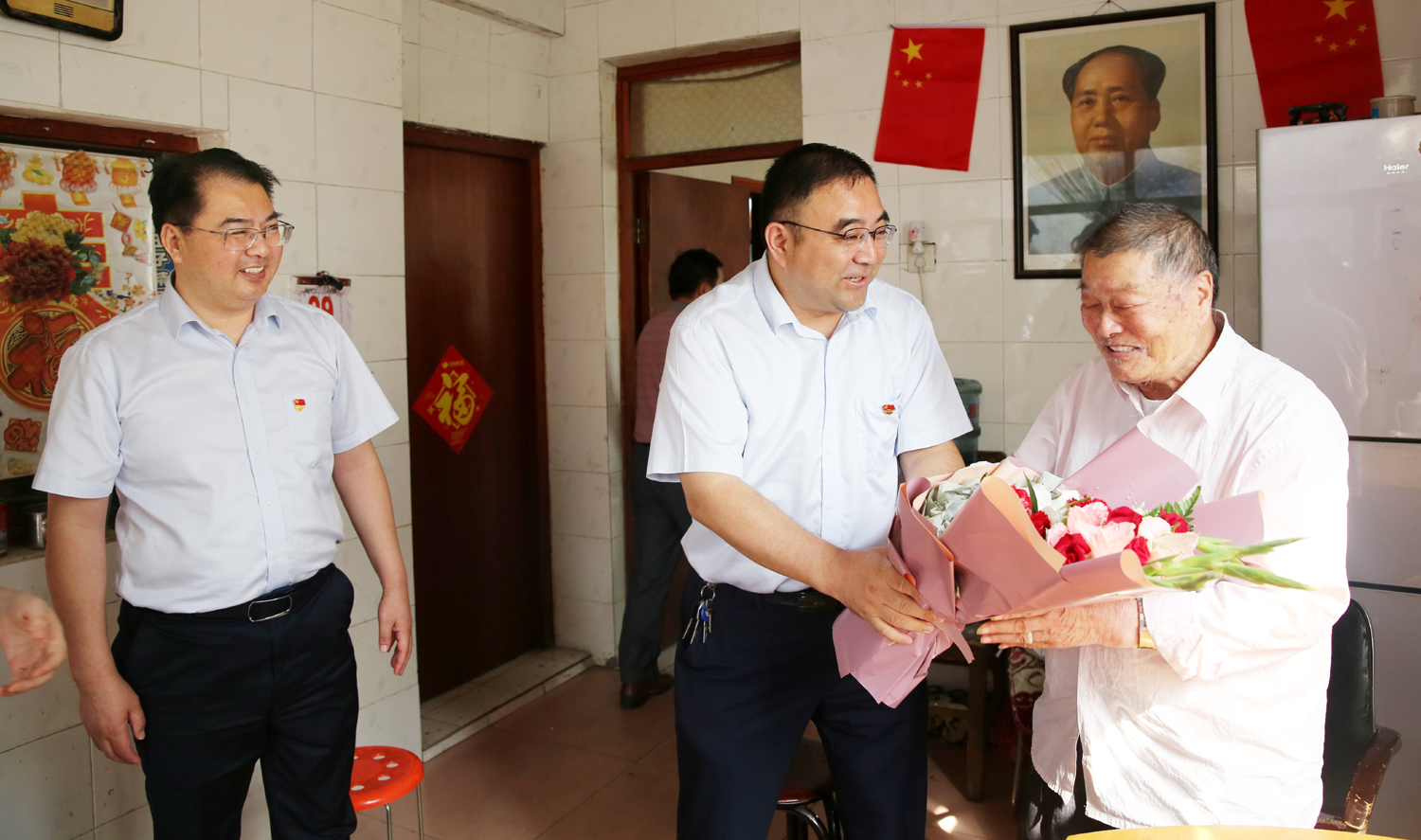 集團(tuán)公司董事長、黨委書記楊龍,總經(jīng)理胡建明、黨委副書記戴鴻鳴、紀(jì)委書記汪群等領(lǐng)導(dǎo)分組走訪慰問部分建國前參加工作的老黨員、老干部,為他們送去慰問金和鮮花,同慶新中國七十周歲華誕。