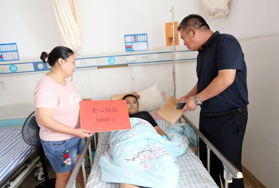 8月16日上午,徐圩投資公司總經(jīng)理莊清付一行到市第二人民醫(yī)院看望正在住院治療的職工張聯(lián)君,并將5萬(wàn)元職工愛心捐款交到他妻子朱敏的手中,讓他和家人感動(dòng)萬(wàn)分。