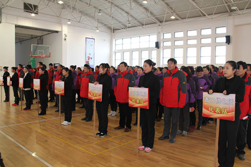 為豐富職工文化生活,迎接新春佳節(jié)的到來(lái)。1月20日,公司在宋跳小學(xué)籃球館隆重舉行2016年度“迎新春”職工運(yùn)動(dòng)會(huì)。來(lái)自公司機(jī)關(guān)及基層單位的8支代表隊(duì)148名運(yùn)動(dòng)員在拔河、集體跳繩、觸電急救、“運(yùn)轉(zhuǎn)乾坤”、“財(cái)源滾滾”、“齊心協(xié)力”、“車輪滾滾”等8個(gè)比賽項(xiàng)目中展開角逐。