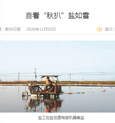 2012年,剛到鹽場工作時,程龍跟著師傅安樹林學習破碴、活碴、扒鹽等。長年累月的風吹日曬,程龍早已沒有8年前的白凈膚色,取而代之的是黝黑的皮膚和成熟的工作經驗,他現在已經是日曬制鹽埒南分公司經理。“剛做到管理崗位時,正趕上秋扒,我?guī)О嘁粋€扒鹽機組。白天黑夜都要站在鹽池格子里,檢查是否有爛泥進入機器。如果爛泥通過輸鹵管道運送到鹽廩上,會形成黑鹽。”那時候,程龍每晚至少要待在鹽池里3個小時,持續(xù)一個多月?!懊慨斂吹禁}廩上堆積的潔白如雪的鹽,我就會覺得一切都值得?!鼻皫啄?,程龍又在市區(qū)買了一套房子。現在,他家已經有兩套房子、一輛車。程龍家的變化只是鹽工生活的一個縮影。