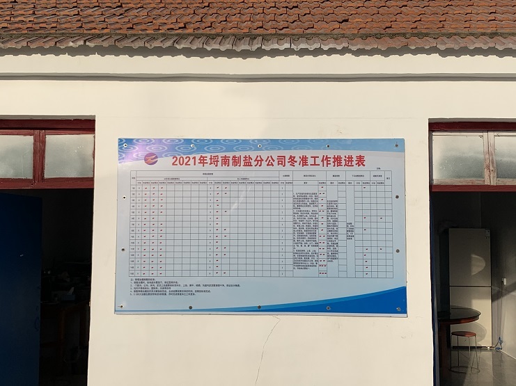 冬季是日曬制鹽收儲鹵水、扒土塘、整理灘場文明的最佳時期,也是為2022年工作起好頭、邁好步的關(guān)鍵時期,為更好落實“冬準(zhǔn)”大會會議精神,12月6日上午,埒南制鹽公司制定冬準(zhǔn)工作推進(jìn)表,張貼在公司辦公區(qū)域墻面上,成立“指揮部”掛圖作戰(zhàn),打好冬準(zhǔn)戰(zhàn)役促。
