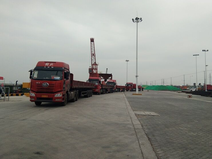 隨著江蘇省境內(nèi)復產(chǎn)復工的開始,省內(nèi)道路交通逐漸恢復,宵洋物流公司抓住戰(zhàn)機,積極發(fā)展客戶。裝載著彈簧扁鋼特種鋼材的車輛絡(luò)繹不絕地駛?cè)氪a頭,直接裝船。這將大幅度降低碼頭倉儲壓力,提高碼頭的運轉(zhuǎn)能力。這也是碼頭首次鋼材進行船運,打破以往車輛運送貨物的局限性,大大增加碼頭的吞吐量。