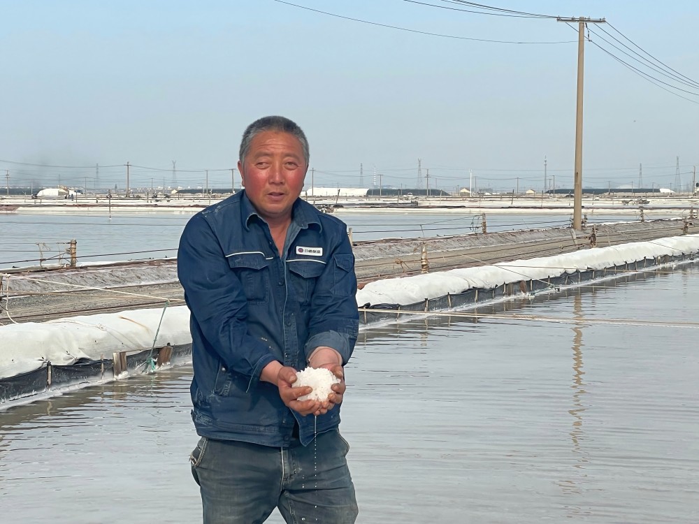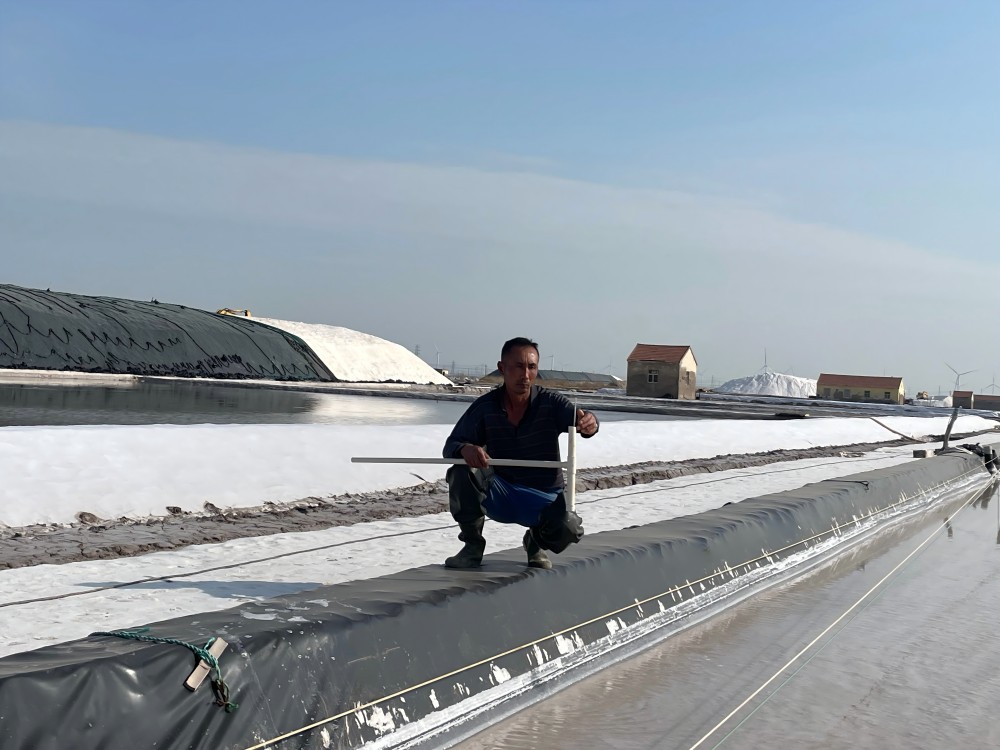 鹽工們的日常,是與陽(yáng)光、礦鹵和鹽灘的對(duì)話。清晨,他們?cè)缭鐏?lái)到鹽灘,檢查鹵水深度和濃度,各節(jié)制、池埝是否滲漏;下午,頂著烈日觀察礦鹵蒸發(fā)狀態(tài);傍晚,仔細(xì)查看鹽粒結(jié)晶情況。遇到極端天氣,全員出動(dòng),爭(zhēng)分奪秒為鹽堆苫蓋防護(hù)布。“雖然辛苦,但看到像小山一樣的鹽堆,就覺(jué)得一切都值了?!蹦贻p的鹽工小陳擦著汗笑道。