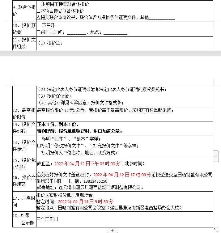 密封報(bào)價(jià)開啟時(shí)間及地點(diǎn):2022年0414日上午9點(diǎn)30,如有特殊情況時(shí)間另行通知。