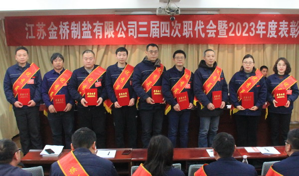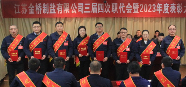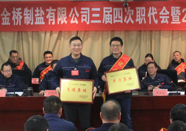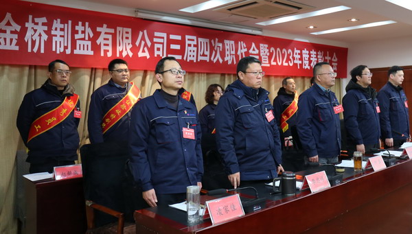 2月2日上午,金橋制鹽公司召開三屆四次職代會(huì)暨2023年度表彰大會(huì)。公司黨委書記、董事長(zhǎng)、總經(jīng)理田磊作《工作報(bào)告》,黨委副書記、紀(jì)委書記、工會(huì)主席曹開明主持大會(huì),公司領(lǐng)導(dǎo)班子成員及職工代表出席會(huì)議。