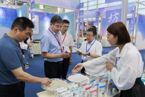 我公司代表集團參加本次展會,展示加碘精制鹽、顆粒鹽、雪花鹽、低鈉鹽等“古淮”“猴王”品牌的20余個食鹽品種,共接待2000多人次參觀。期間,省文旅廳黨組成員、副廳長錢鋼等蒞臨展位觀摩指導,對公司淮鹽文化傳承工作予以肯定。