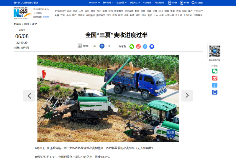 我公司耐鹽堿小麥開鐮收割受到各級媒體關(guān)注