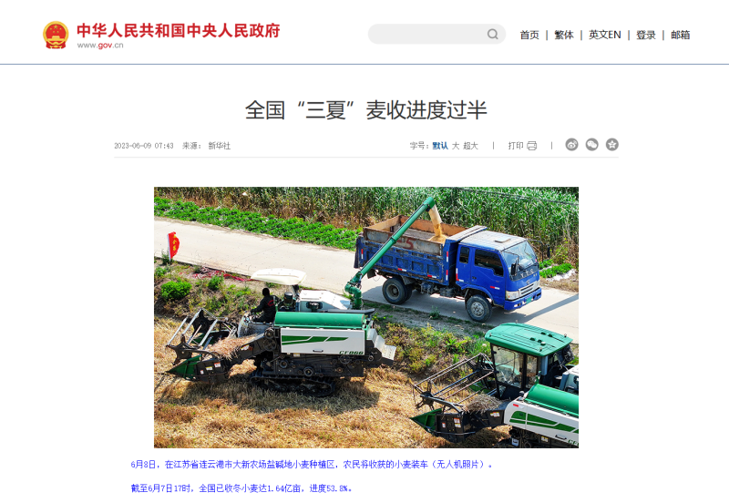 自6月8日麥收工作啟動以來,青口投資公司高度重視、精心組織,科學(xué)高效調(diào)動全方面因素,全力投入耐鹽堿小麥收割工作,開創(chuàng)了農(nóng)業(yè)高質(zhì)發(fā)展新局面,受到了中國政府網(wǎng)、人民網(wǎng)、新華社、新華網(wǎng)、連云港日報、蒼梧晚報等中央、省市級主流媒體的廣泛關(guān)注。(青 宣)