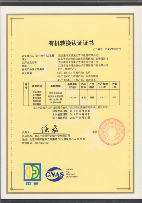 11月25日上午,我公司種植的“南粳9108”有機(jī)大米經(jīng)過嚴(yán)格認(rèn)真的檢測(cè)和審核,獲得北京中安質(zhì)環(huán)認(rèn)證中心頒發(fā)的有機(jī)轉(zhuǎn)換認(rèn)證證書。
