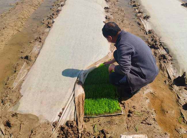 近期,大新農(nóng)場組織對(duì)自營農(nóng)田機(jī)插秧集中檢查,目前秧苗生長正常已達(dá)到1.5-2葉秧齡。由于天氣良好溫度持續(xù)上升,預(yù)計(jì)5月下旬即可揭開無紡布進(jìn)行秧苗管理,6月上旬開始插秧。(劉 楊)