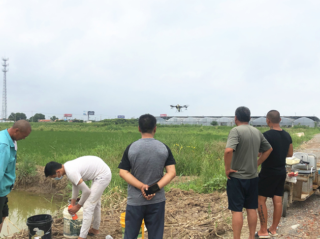 據(jù)生態(tài)種養(yǎng)中心嚴(yán)鑫介紹,現(xiàn)在正值多雨高濕天氣,水稻易發(fā)稻瘟病、稿飛虱、稻縱卷葉螟等病蟲(chóng)害,為了做好水稻的病蟲(chóng)害高效防治及除草工作,需要用無(wú)人機(jī)在稻地進(jìn)行打藥作業(yè)。