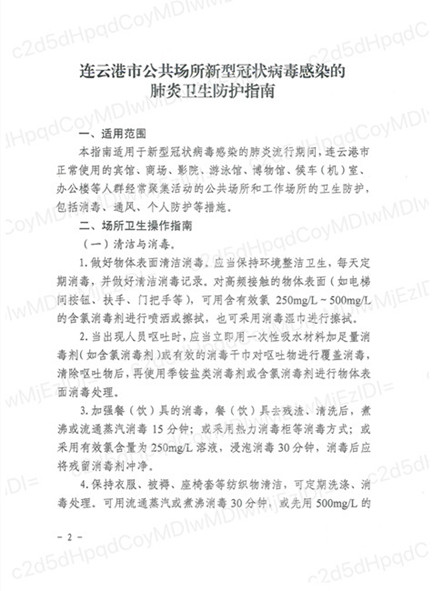 【防護指南】連云港市公共場所新型冠狀病毒感染的肺炎衛(wèi)生防護指南