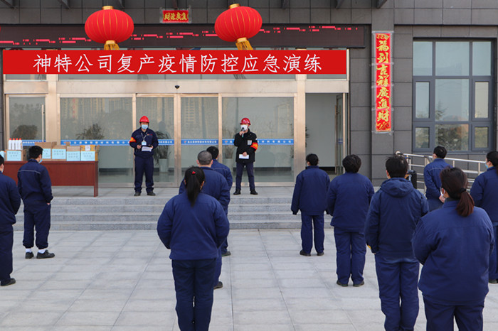 2月26日,神特公司開展復(fù)產(chǎn)疫情防控應(yīng)急演練,進(jìn)一步檢驗(yàn)疫情防控成效,提升突發(fā)衛(wèi)生事件響應(yīng)和應(yīng)急處置能力。公司疫情防控領(lǐng)導(dǎo)小組全體成員,疫情應(yīng)急組、后勤保障組、醫(yī)療救護(hù)組各工作組成員,以及生產(chǎn)一線、機(jī)關(guān)后勤復(fù)產(chǎn)員工50余人參加了演練活動。
