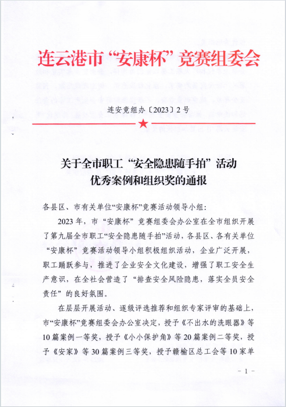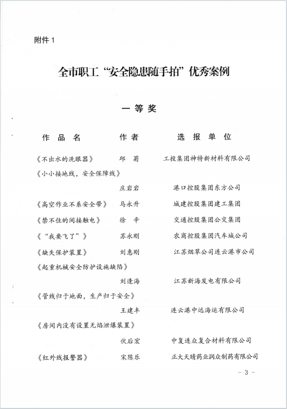 公司員工在全市職工“安全隱患隨手拍”活動(dòng)中獲獎(jiǎng)