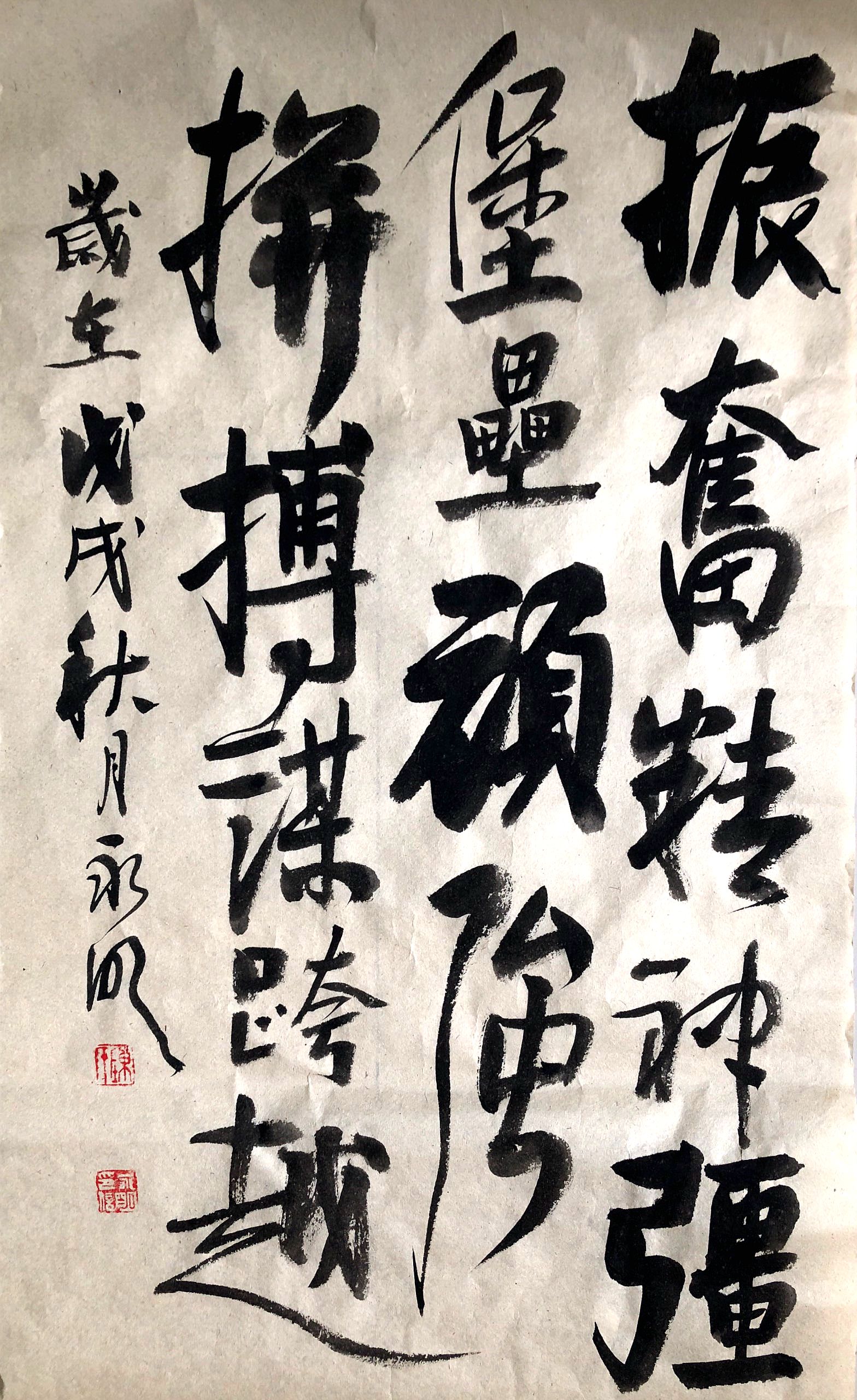 書(shū)法作品《振奮精神強(qiáng)堡壘,頑強(qiáng)拼搏謀跨越》