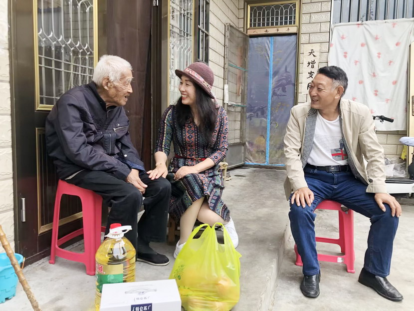 只見今年已105歲高齡的江爺爺,語言表達能力雖逐漸減弱,但他用他那獨特的微笑方式對我們的到來表示歡迎。當得知老人耳朵聽不清,但身體狀況良好時,猴嘴辦工作人員向老人送上慰問品并祝愿老人健康長壽。江爺爺的兒子動情地說道:“感謝企業(yè)在逢年過節(jié)時都不忘記這些老人,我們作為兒女,也一定會孝敬好老人、守護好老人健康。”