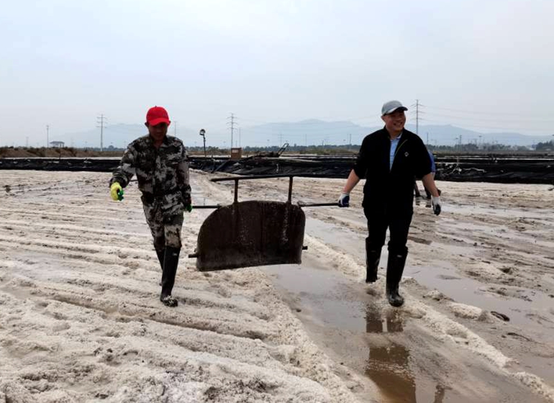 厲兵秣馬,鏖戰(zhàn)秋扒鹽。“同志們,這將是我們臺北地區(qū)1300年鹽業(yè)史上最后,也是時間最緊急、任務最繁重的一次秋扒鹽了”正是因為使命在肩,我們更要勇往直前。公司全體黨員干部爭分奪秒扒鹽、竭盡全力制鹵,奮戰(zhàn)100天,全力沖刺“開新局、奪首勝”目標任務。連云港堿廠關停在即,鹽鈣聯(lián)產項目終結,原鹽搶收進入到了大決戰(zhàn)時刻。為此,公司上下,從黨委班子到普通辦事員,從直屬單位到公司機關,全部動員起來,928日召開了戰(zhàn)前動員大會并進行秋扒崗前培訓。102日,天時地利人和,夜里910分,隨著機器一聲轟鳴,扒鹽機組輸鹽大架銀瀑飛濺,大八組、西灘雙向聯(lián)動,人工扒鹽、機械扒鹽齊頭并進。公司領導與廣大職工想在一起、干在一起,上下齊心、爭分奪秒,擼起袖子、甩開膀子,在鹽池間盡情地揮灑著汗水,確保勞動成果顆粒歸倉,誓奪原鹽收官戰(zhàn)全勝。截止6日晚,公司 排放鈣液6000方,扒鹽3000余噸。