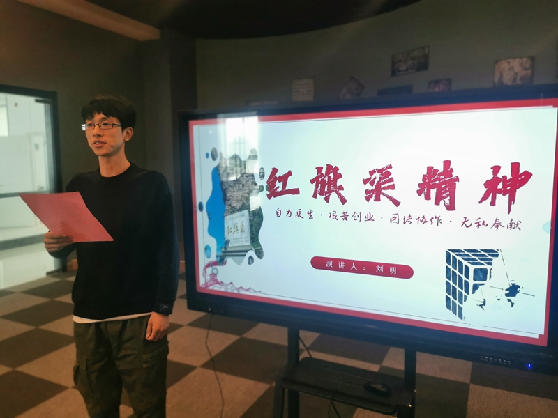 一場演講比賽——“自力更生、艱苦創(chuàng)業(yè)、團結(jié)協(xié)作、無私奉獻(xiàn)”,青年職工走上講臺,述說著勤勞勇敢的30林州人民,苦戰(zhàn)10個春秋,僅僅靠著一錘,一鏟,兩只手,在太行山懸崖峭壁上修成了這全長1500公里的紅旗渠的奮斗故事。