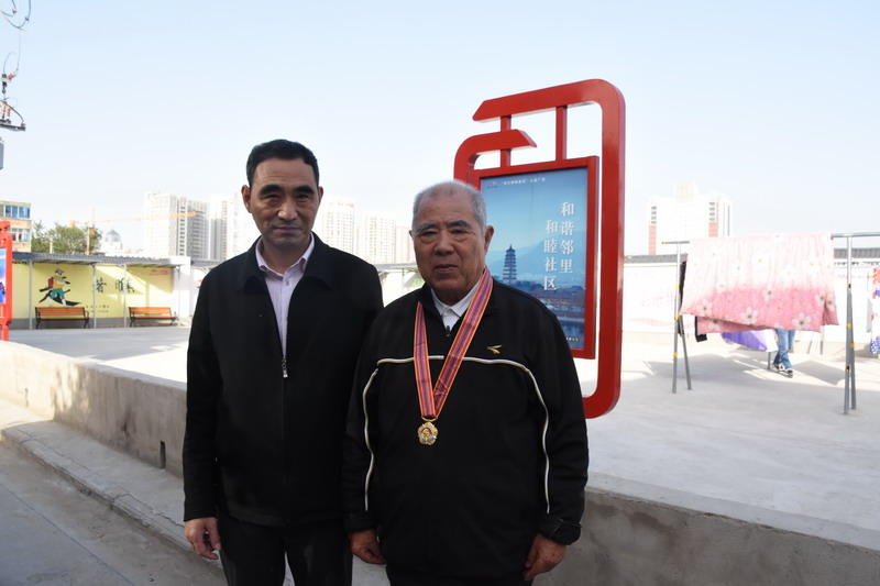 解韻波同志今年83歲,1956年1月參軍,那年19歲,同年6月經(jīng)過短期高強(qiáng)度培訓(xùn),作為無(wú)線電通訊兵出國(guó)抗美援朝。1959年西藏達(dá)賴集團(tuán)發(fā)動(dòng)叛亂,剛回國(guó)不久的解韻波作為無(wú)線電技術(shù)兵種隨即跟隨大部隊(duì)入藏平叛。至今他仍保留著抗美援朝軍功章,入藏平叛軍功章、紀(jì)念章等。1962年退伍分配至臺(tái)北鹽場(chǎng)工作,1997年退休。今天慰問的時(shí)候,在鄰居們的簇?fù)砗推G羨之中,還沒進(jìn)家門,鄰居們就迫不及待地要求打開“紀(jì)念章”一睹風(fēng)采。紀(jì)念獎(jiǎng)?wù)聮煸诶蠎?zhàn)士胸前,一眾鄰里夸贊不斷:這份榮譽(yù)沉甸甸的。這份榮譽(yù)是拿命換來的。這是不得了的榮譽(yù)啊。這樣的老兵是我們的寶貝哦,我們要尊敬啊。……就在小區(qū)活動(dòng)廣場(chǎng)上,老戰(zhàn)士與大家暢談起保家衛(wèi)國(guó)光榮的戰(zhàn)斗經(jīng)歷,烽煙往事歷歷在目。退伍后,不褪軍人本色,幾十年如一日立足家鄉(xiāng)建設(shè),為臺(tái)北鹽場(chǎng)奉獻(xiàn)青春,為國(guó)家建設(shè)貢獻(xiàn)力量。大家對(duì)解韻波老戰(zhàn)士的革命戰(zhàn)斗和建設(shè)祖國(guó)的歷程表示由衷贊嘆和敬佩。