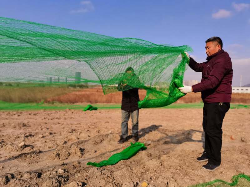一名黨員就是一面旗幟,十余處山丘上,不只是一面“黨員突擊隊”旗,而是幾十上百面的“戰(zhàn)旗”。在鮮紅旗幟的引領(lǐng)下,僅僅一天時間,突擊隊員們“沖鋒陷陣”,攻克一個又一個“山頭”,鋪設(shè)800余張防塵網(wǎng),共計200余畝裸土。