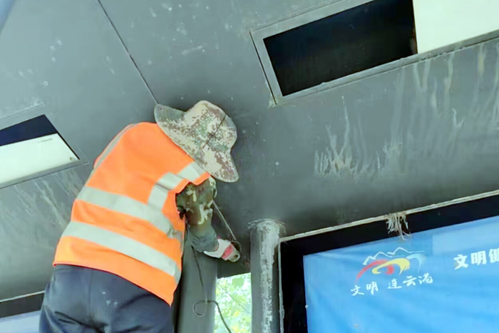 連日來,工作人員對對徐新路、228國道、徐圩大道等處沿線公交站臺進(jìn)行全面除銹刷新作業(yè),大家每日持續(xù)工作7個小時以上,不怕臟與累,始終保持高昂斗志。